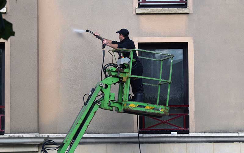 - Nettoyage haute pression : pour éliminer saletés, graffitis et dépôts de pollution sur les façades en béton, pierre ou enduit ;